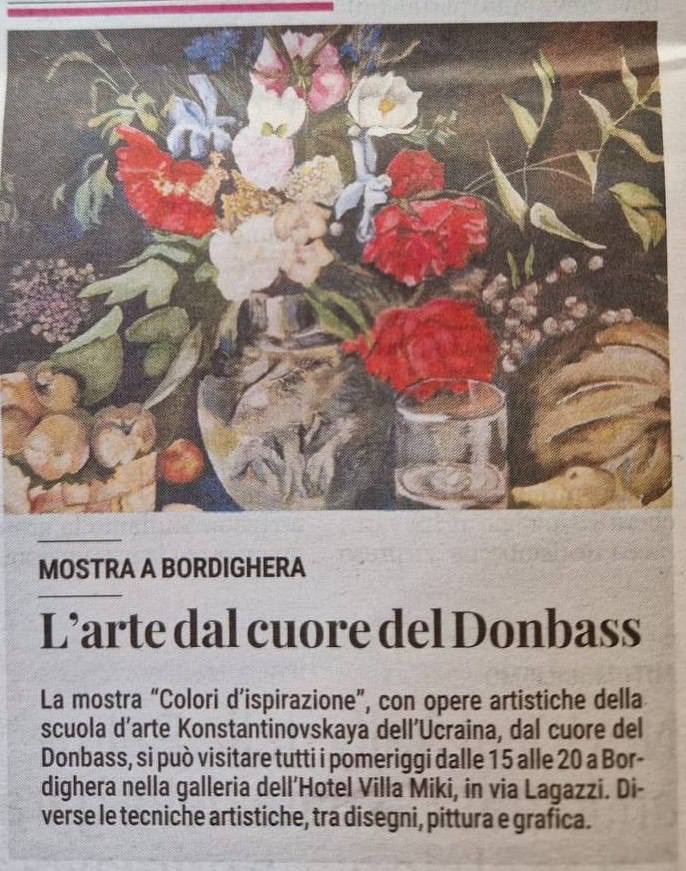 Ученики Костянтиновской школы искусств представили свои работы на международной выставке «Барви натхнення», которая открылась 5 апреля в Galleria d'arte Villa Miki, Бордигера, Италия.