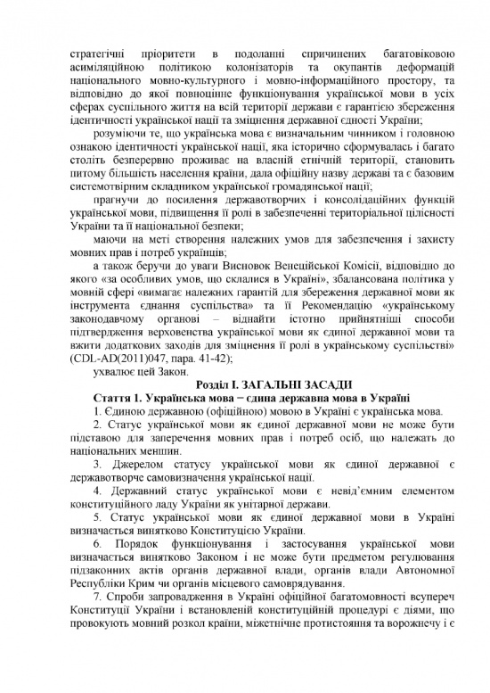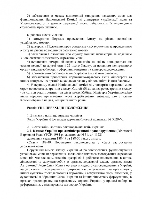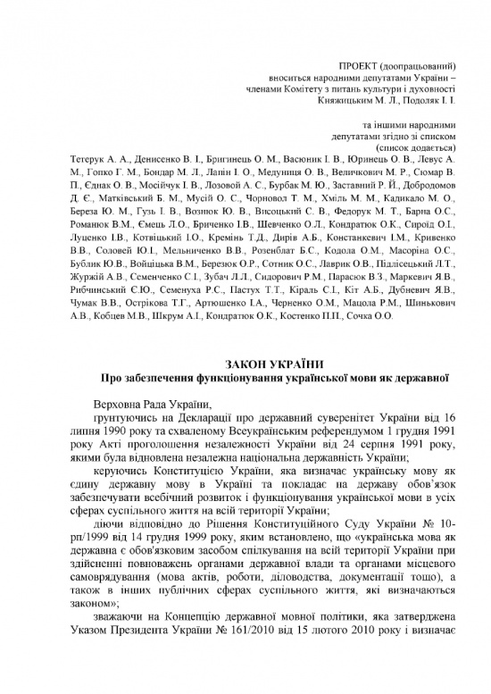 Сегодня, 4 октября 261 народный депутат Украины выразил свое согласие с принятием в первом чтении закона об украинском языке как единственном государственном. Согласно документу, украинский язык будет главенствующим в сферах образования, науки и культуры, а также теле- и радиовещании, в газетах и издательствах.