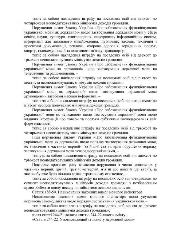 Авторы законопроекта предлагают для нарушителей норм закона применять административную и уголовную ответственность. Нарушителей могут оштрафовать на 50 прожиточных минимумов (850 гривень) или лишить свободы сроком до трех лет, пишет канал 24. В этом документе еще очень много нововведений, но пока законопроект принят Верховной Радой только в первом чтении.