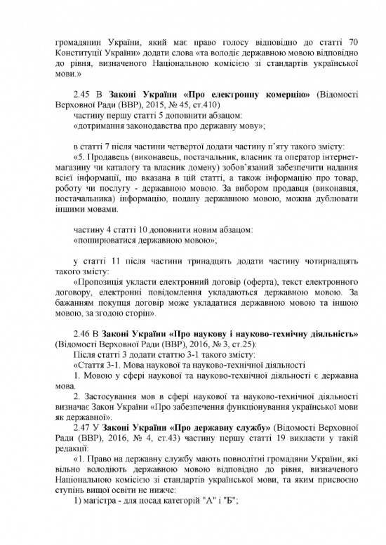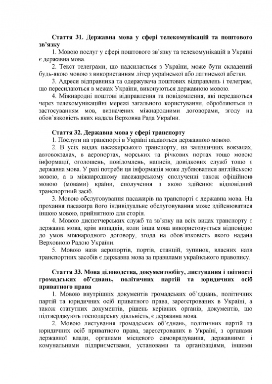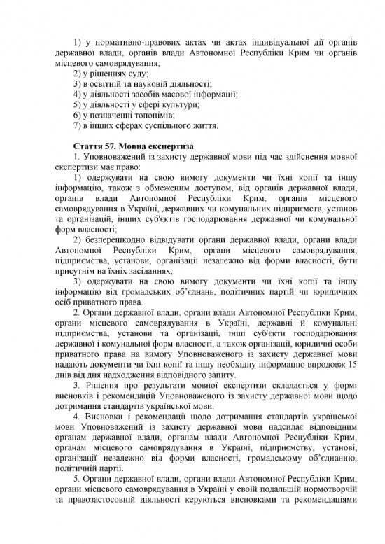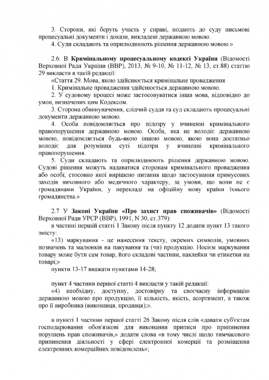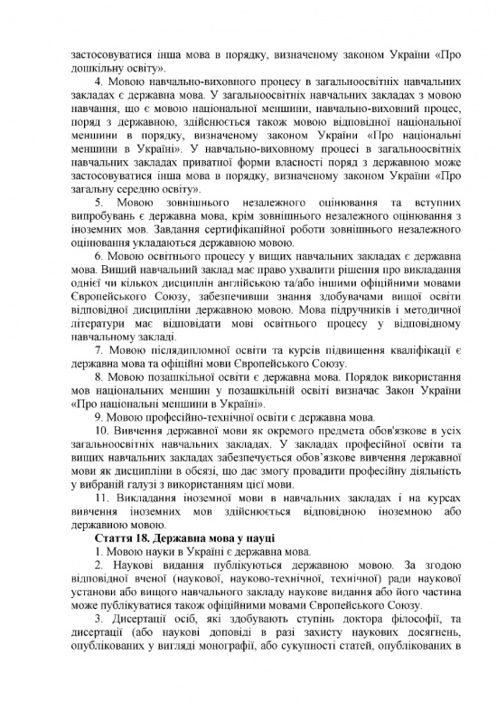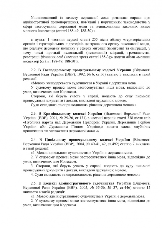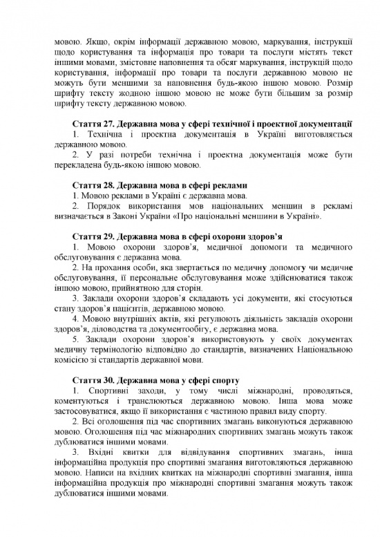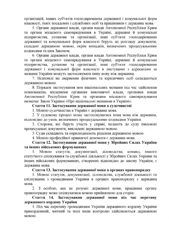 В судопроизводстве государственный язык станет обязательным. В процессе судебного заседания можно будет говорить на ином языке, но только в присутствии переводчика. Медицинскую документацию также обяжут вести на украинском языке, как и прием и организацию процесса лечения пациентов. Предусмотрено исключение: во время лечения можно будет общаться с больным на другом языке, но если больной об этом попросит.