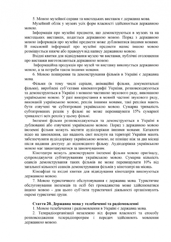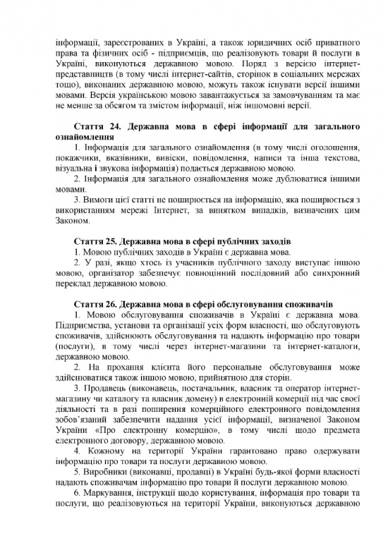 Работать на государственном языке обяжут электронные информационные системы, сферы обслуживания, спорта, почтовой связи, здравоохранения и транспорта. На украинском языке должна выходить вся реклама, написаны вывески и таблички. Применять государственный язык должны политические партии, общественные организации и представители бизнеса, пишет РБК-Украина.