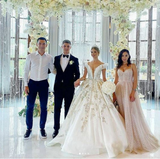 Пара заключила брак 21 июля, но фото с торжества стали появляться только сейчас. Их постят как счастливые молодожены, так и друзья пары.