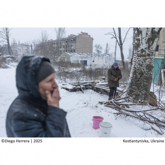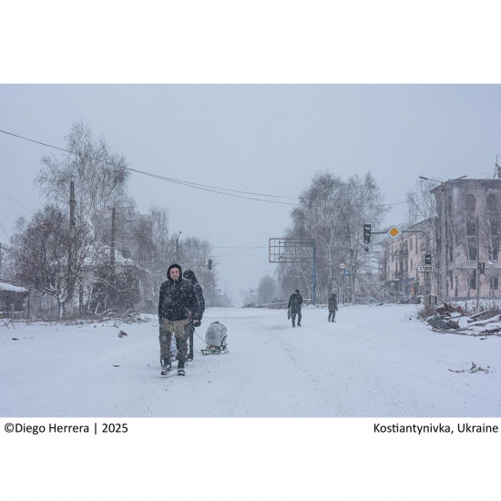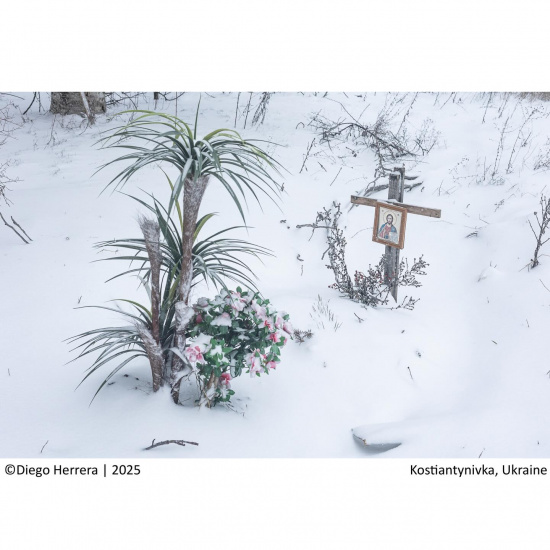 Звуки артиллерии и жужжание дронов слышны не умолкая даже во время снегопада — передышки нет. Погибших при обстрелах соседей хоронят прямо у порогов их домов. Константиновка медленно умирает", — описывает увиденную картину фотожурналист.