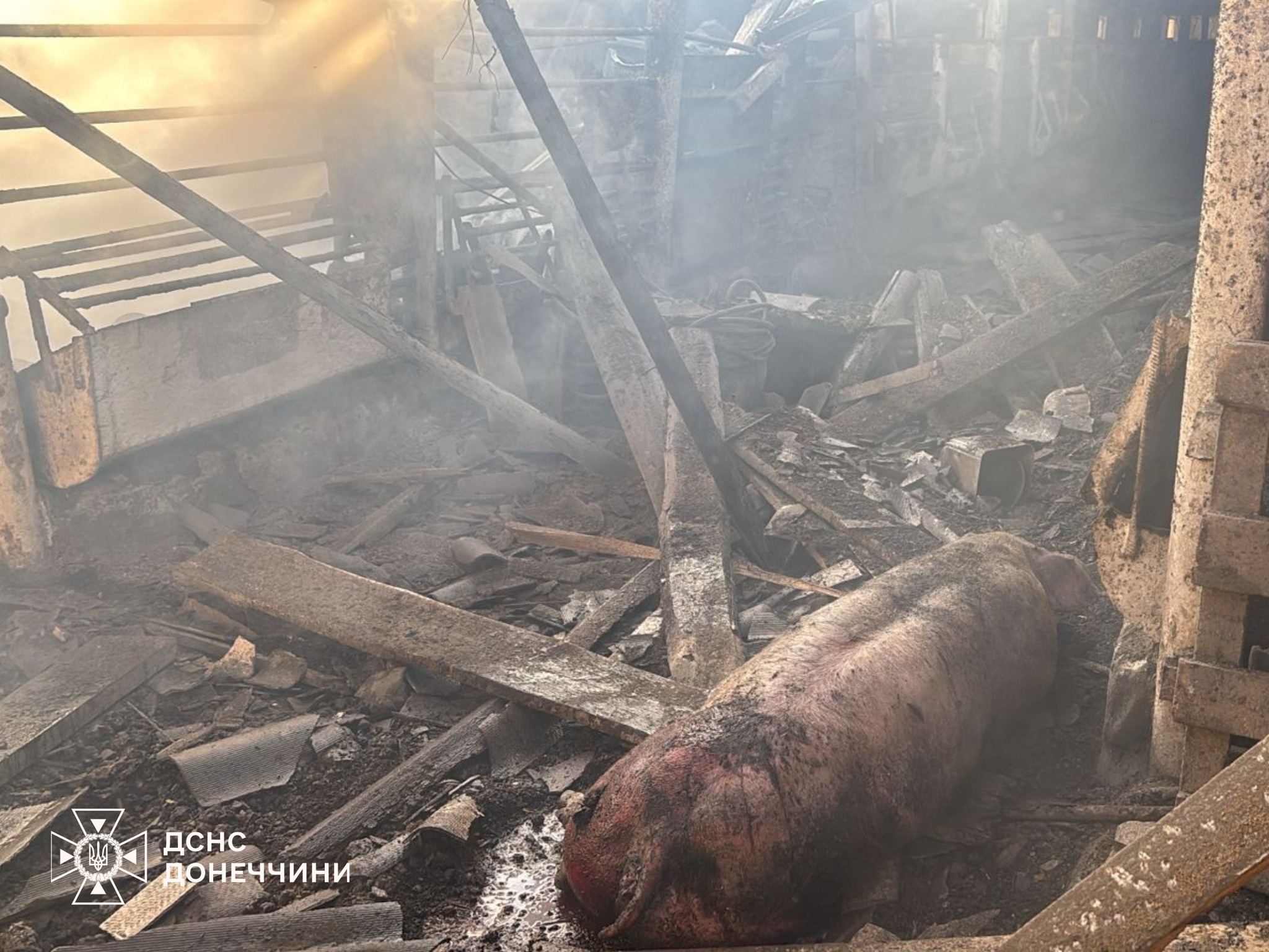 Внаслідок обстрілу загинули чотири свині, але ще п'ять тварин рятувальники змогли вивести з охопленої вогнем будівлі.