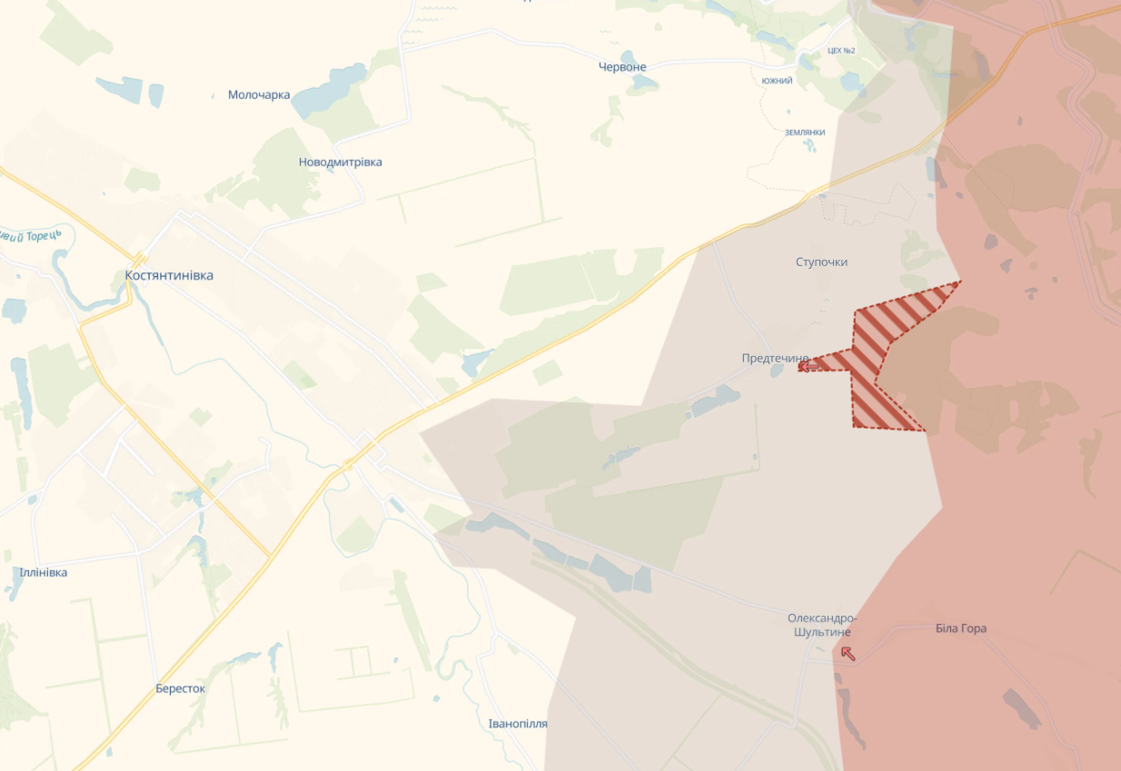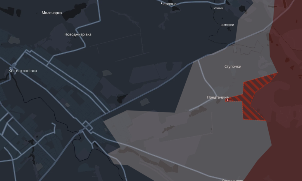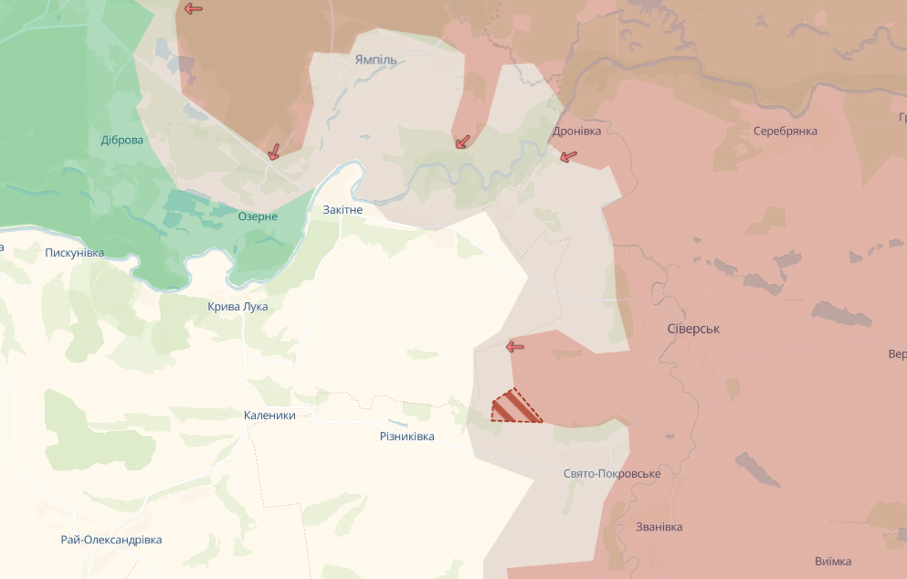 На Донеччині аналітики фіксують просування противника у двох місцях. На Костянтинівському напрямку російські підрозділи зайняли нові позиції біля села Предтечине Костянтинівської громади. На Сіверському напрямку армія РФ просунулась біля Різниківки (на захід від Сіверська).