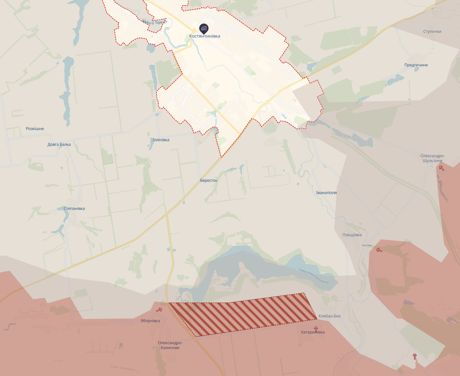 Армія РФ просунулась на південь від Костянтинівки: біля Катеринівки та Клебан-Бика Іллінівської громади, наблизившись до водосховища.