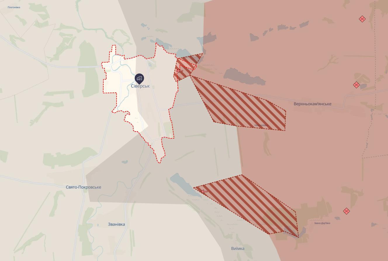 Згідно з оновленою картою, ворог просунувся поблизу Ямполя в Краматорському районі, Сіверська в Бахмутському районі, а також біля селища Виїмка, що входить до Соледарської міської громади Бахмутського району.