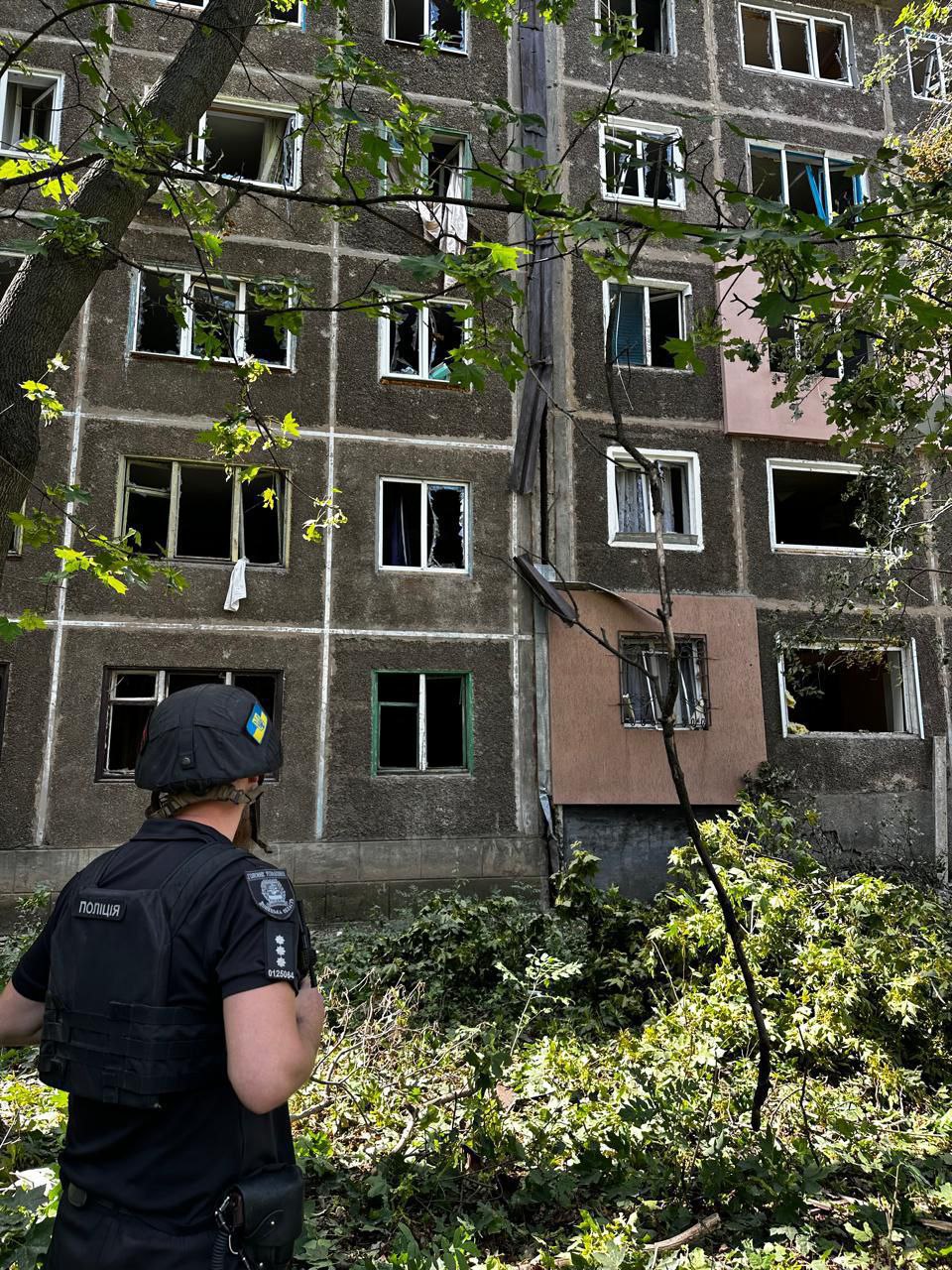 У місті пошкоджено приватні та багатоквартирні житлові будинки, автомобілі, торгові заклади та лінія електропередач.
